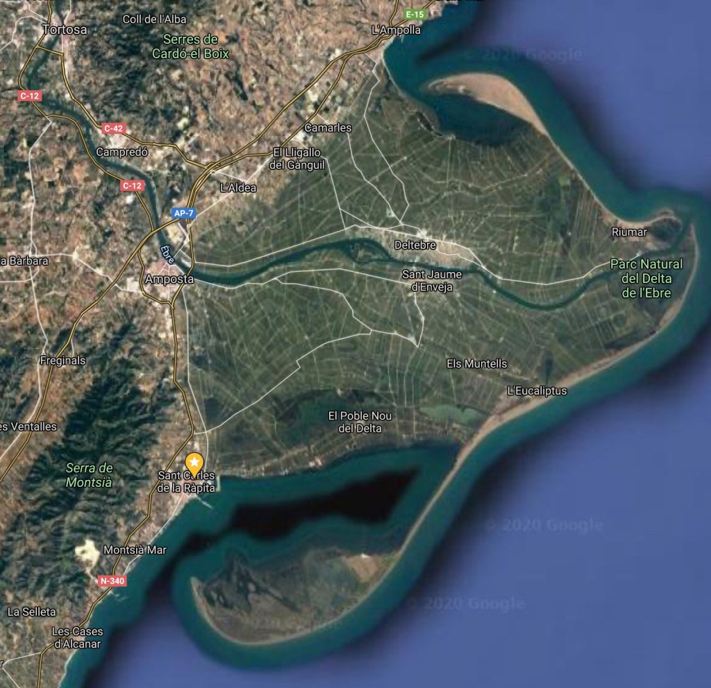 Bien sûr, ce bras n’est rien d’autre que le Delta de l’Ebre jusqu’à la Punta de la Bania, qui protège Sant Carles de la Ràpita de mauvaise météo, comme la tempête Gloria récemment.