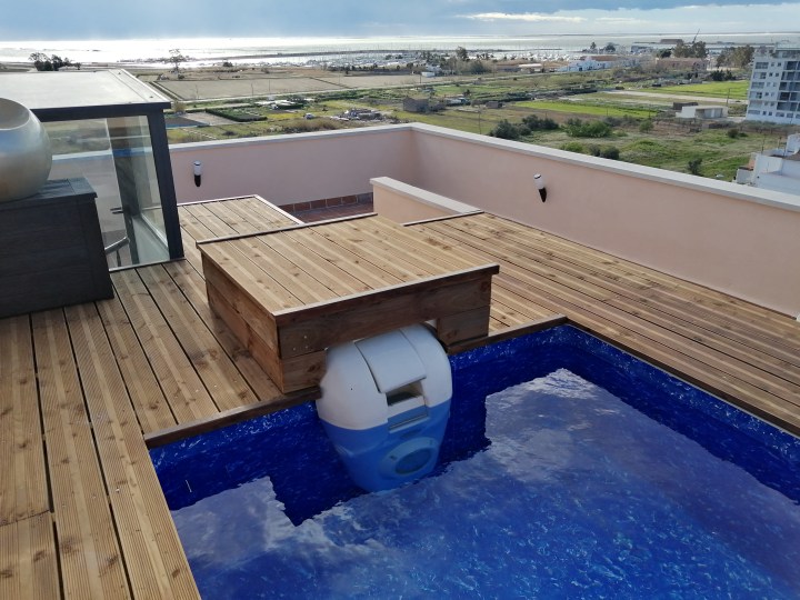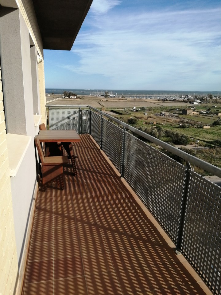 Situé à Sant Carles de la Ràpita,, pouvant accueillir jusqu’à 8 personnes, 3 chambres, 2 salles de bain, cuisine équipée, salon avec canapé lit (160×190), salle à manger, 2 balcons, en duplex: terrasse solarium, piscine privée, vue panoramique sur Delta, Mer, Montagne… inoubliable… Vous avez aussi accès aux piscines communautaires et aux 2 places de parking privées au sous-sol